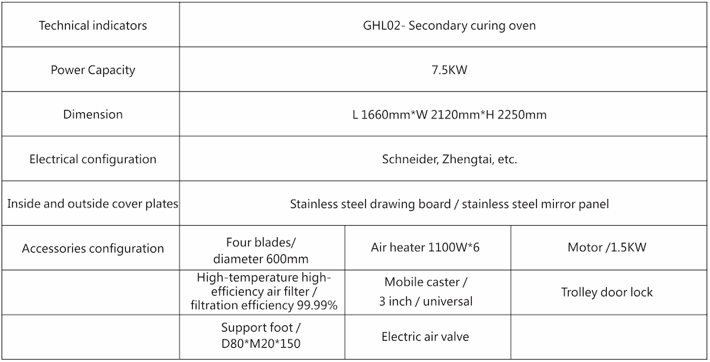 The basic principle of the primary curing oven is the use of electricity as a thermal energy source,heat generated by the electric heatng element,convection heat transfer using a fan,heat transfer of the material,and continuous replenishment of fresh air and discharge of humid air Its greatest feature is the air filter installed at the outlet of hot air circulation.