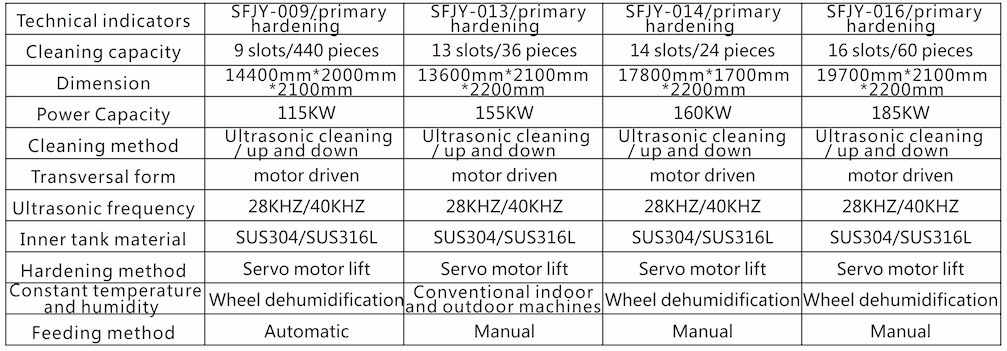 Manual/automatic feeding → Washing with medicine water →Washing with RO water →Washing with DI water → Cutting water →Drying → Hardening → Precuring →Secondary hardening→Secondary curing →manually/ automatically feeding